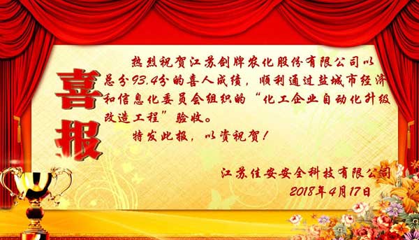 热烈祝贺江苏剑牌农化股份有限公司顺利通过自动化升级改造工程验收