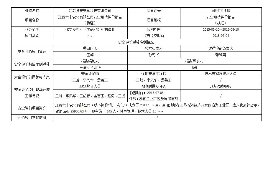 江苏常丰农化有限公司 安全现状评价报告(换证)