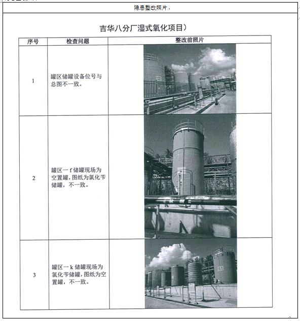 安全评价项目简介 | 江苏吉华化工有限公司(简称“吉华化工”)位于江苏滨海经济开发区沿海工业园区,创建于2006年7月24日,注册资本20000万元人民币,法人代表徐江勇。现有职工840人,技术管理人数30人,专职安全管理人数22人。 吉华化工湿式催化氧化法处理高浓度染料及染料中间体废水升级改造项目已于2016年11月1日取得了滨海县经济和信息化委员会《企业投资项目备案通知书》(备案号为3209221605325),30吨/天活性炭吸附与再生利用项目于2017年5月12日取得了滨海县经济和信息化委员会《企业投资项目备案通知书》(项目代码:2017-320922-26-03-620176)。该项目安全预评价已于2017年10月23日经专家确认;其安全设施设计已于2017年11月23日通过专家审查,并确认通过。活性炭吸附与再生利用项目装置布置在八分厂活性炭再生装置区。目前,设备均已安装完毕,已按要求进行了试生产并已经专家确认,在试生产过程中发现仍有不足之处,为进一步减少废水废物、废气的排放,决定对“湿式催化氧化法处理高浓度染料及染料中间体废水升级改造项目以及30吨/天活性炭吸附与再生利用项目”进行局部设计变更。 | ||||