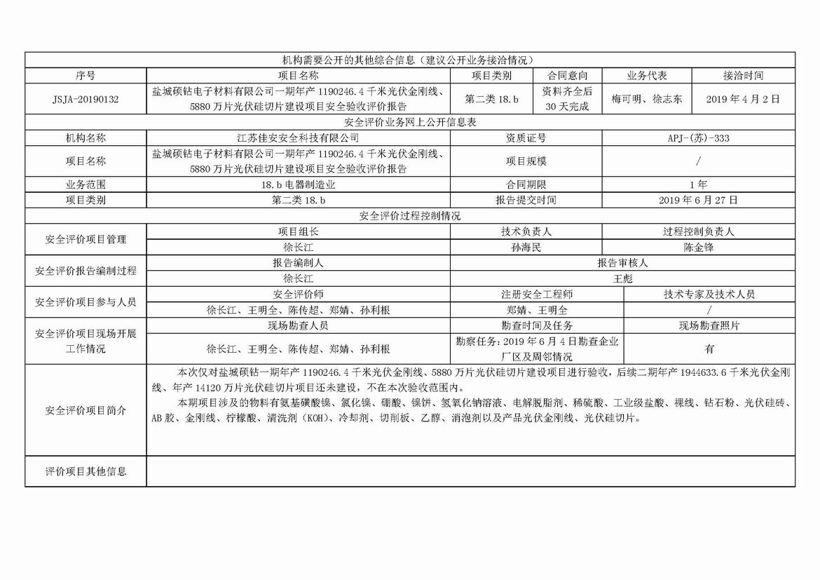 盐城硕钻电子材料有限公司一期年产1190246.4千米光伏金刚线、5880万片光伏硅切片建设项目安全验收评价报告